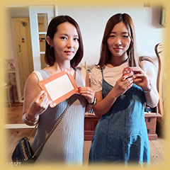 ■今夜は山梨県在住の姉妹のお客様と台中からはるばる遊びに来てくださったお客様の参加です。English a littreと日本語の私のレクチャーが始まりです。さてさて日本語だけだったら初めて同士のお客様も筆を一緒に滑らせながらお互い「どちらから来られたんですか?」から始まっていつもいつの間にかそれぞれ会話が弾むのですが今日は私からお客様、お客様から私・・、何とか折角の同じ時間を過ごす間に皆で共通の話題が出来ないかなあ・・と、思いました。まずは姉妹のお客様に「ねえ、英語は話せる?」と尋ねてみました。すると、「隣の家の人がグローバルな人でそこで英語を習っていました!!」まあ!それはそれは。ならば、と台中のお客様に「彼女、英語が話せるわよ。ほら、夕食のとき後ろのテーブルでお母さんとおばあちゃんも一緒だった方達よ!」と伝えるとお顔を上げて「まあ!話せる?」と嬉しそうに姉妹のお客様の方に目をやりました。すると、お姉さんが「いえいえ、話せるのはちょっぴり!」と答えられました。私も更に出来る限りの英語を使って「お姉さんは看護士さんで妹さんは中学生よ!そして彼女は台中から遊びに来てくださったの」と言うと「ホント!私も台中の看護士よ!先に寝ちゃった友達も看護士よ」って。それからは「何科?」など等どんどん話が進みいつの間にか作品を横に置いて台湾の地図を書きながら住んでいるところはここで、勤めている病院はここで・・。明日はどこへいくの?などなど、どんどん話が広がり最後はお互いにそれぞれのカメラで一緒に写真を 撮ることになりました。素敵!素敵!だからこの時間が大好きなの!うふふ。