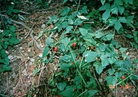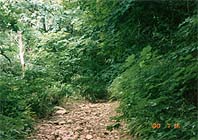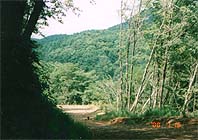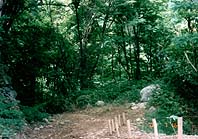 さあて下り坂。この道にはリースにアレンジできそうな物がいっぱい。ヤシャブシの実、ウバユリ、松ぼっくりにどんぐり、急に足元が悪くなるんだけれど、どんどん進め!川の音が聞こえるでしょ!