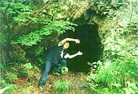 洞穴の前には一本だけ大っきな杉がどっしりと立
