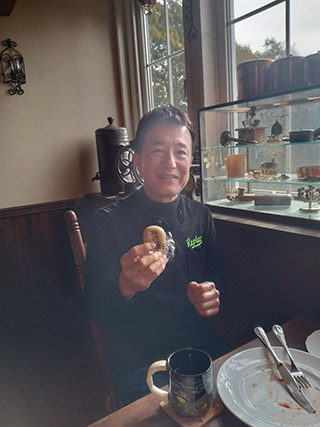 マエダパパ会長が今回はおひとりでバイクに乗ってFTに帰って来て下さっています。 マエダパパ会長のアンコと言えば外せないこの「身延まんじゅう」 |