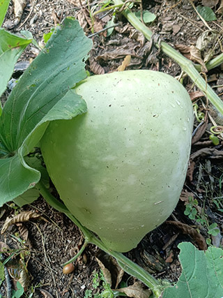 調べてみたところ、カボチャの台木だったウリ科のユウガオが勝ってしまっての出来事の様です。 何とコレって干瓢のモトだなんて更に驚きです。 煮ても天ぷらにしても美味しいのだとか! カボチャから思いがけないモノになりました。 話の種にまたお皿に乗せてみようかしら。 ウフ。