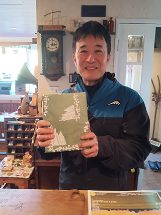 餡ことお茶会会長のカッコいい前田パパがチヨコママと吹雪く中をまたまた帰って来て下さいました。 チヨコママが「チヅルさん、コレを!」と差しだして下さったのはナントこの会が結成されるきっかけになったあの身延饅頭です。 |