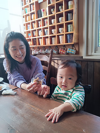 シノダママも茶道を嗜みマエダパパとお茶の話も弾みます。 何と何と1歳のリュウチャンもアンコがお気に召して!! 小さなボクにも分かる「美味しいアンコ」にウフフです。 |