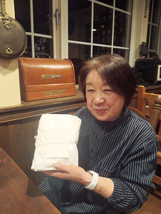 常連の大御所、ミナコさんが帰って来て下さっています。 「12月に話していた、、昔からある近所の酒まんじゅう持って来ました!! 先月お会いした時に話たわよね、、けれどそれも年が明けるともう「昨年」の話になるのね、、時が過ぎるのも早いなぁ〜」 と包みをいただきました。 |